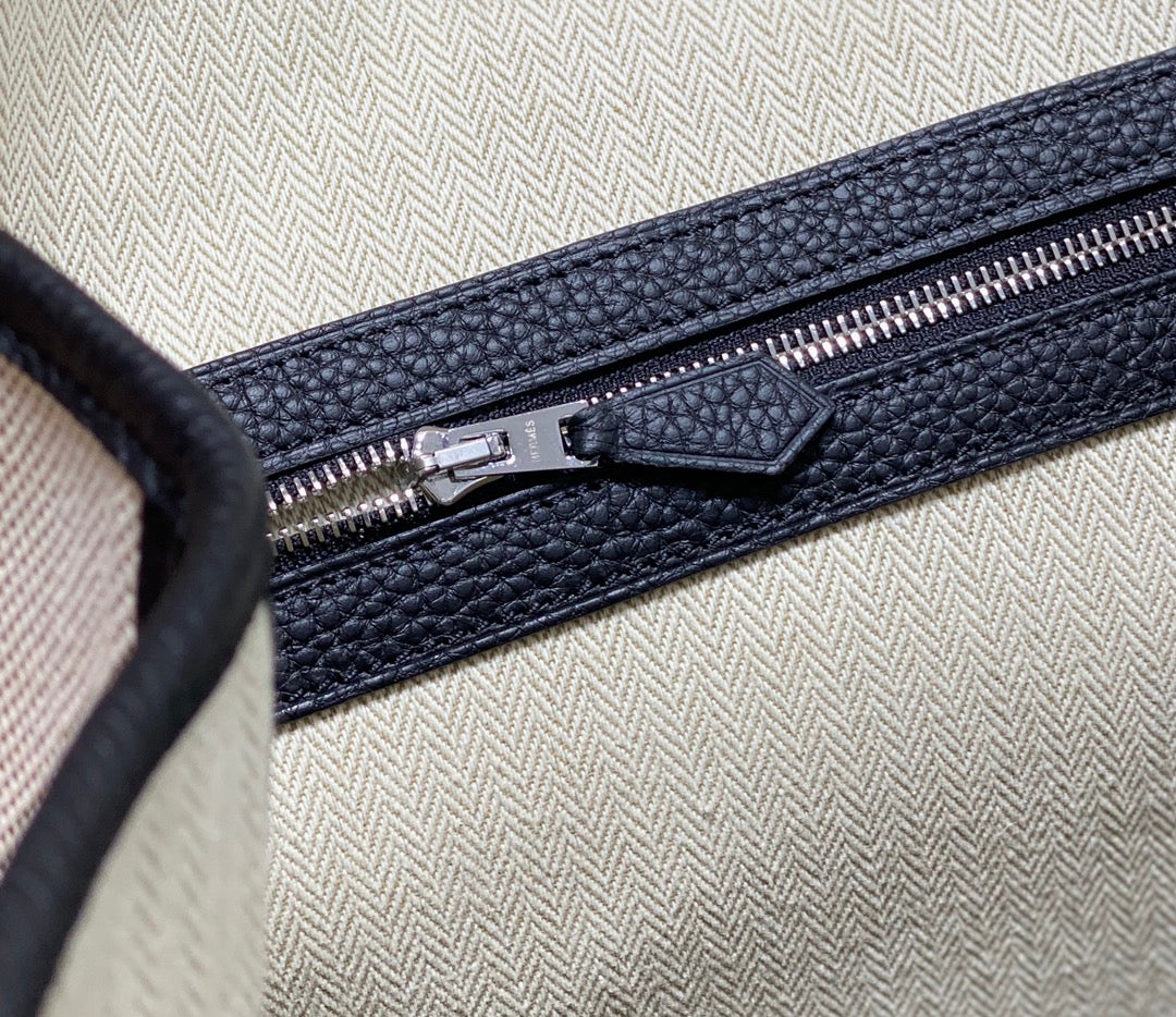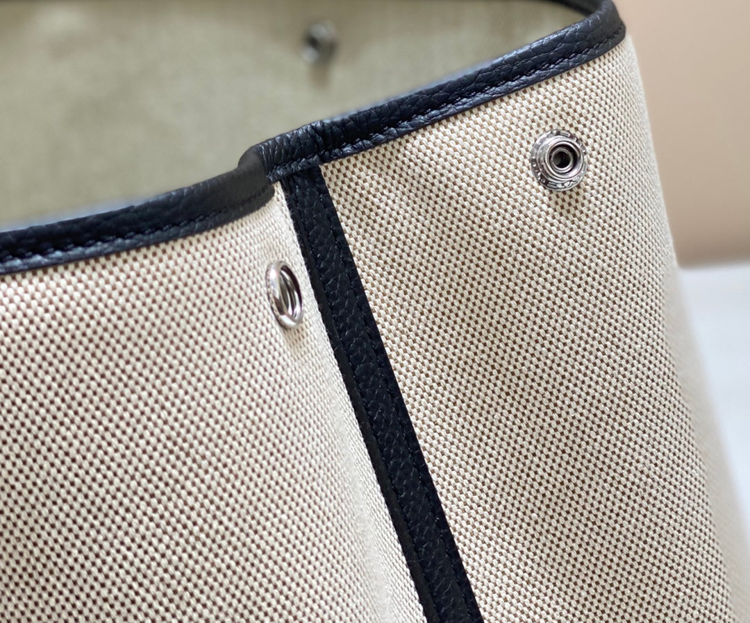 GARDEN PARTY 36CM IN WHITE TOILETS COTTON CANVAS AND BLACK CALFSKIN