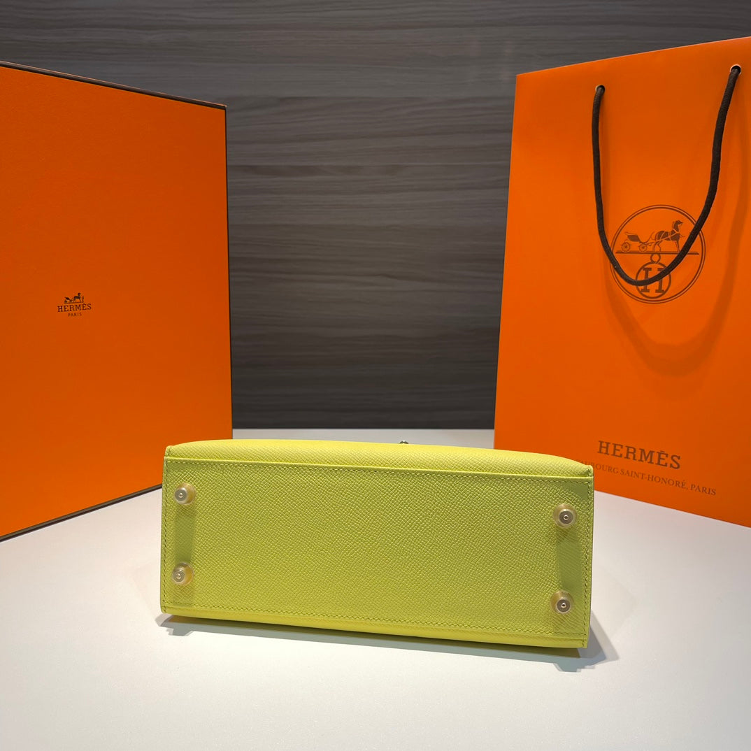 HM KELLY 25CM LIME EPSOM LEATHER GOLD HARDWARE