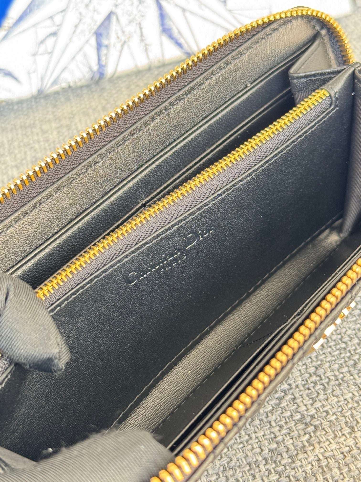 VERTICAL LONG ZIP WALLET 20 IN BLACK QUILTED ALLOVER CALFSKIN